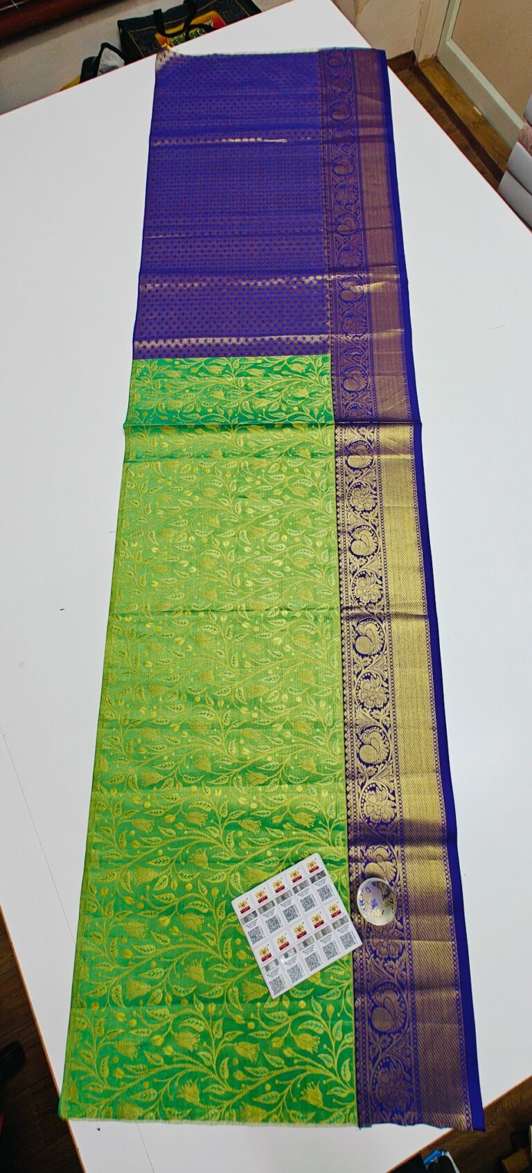 •Immerse yourself in the luxurious feel of authentic handwoven silk, adorned with intricate zari