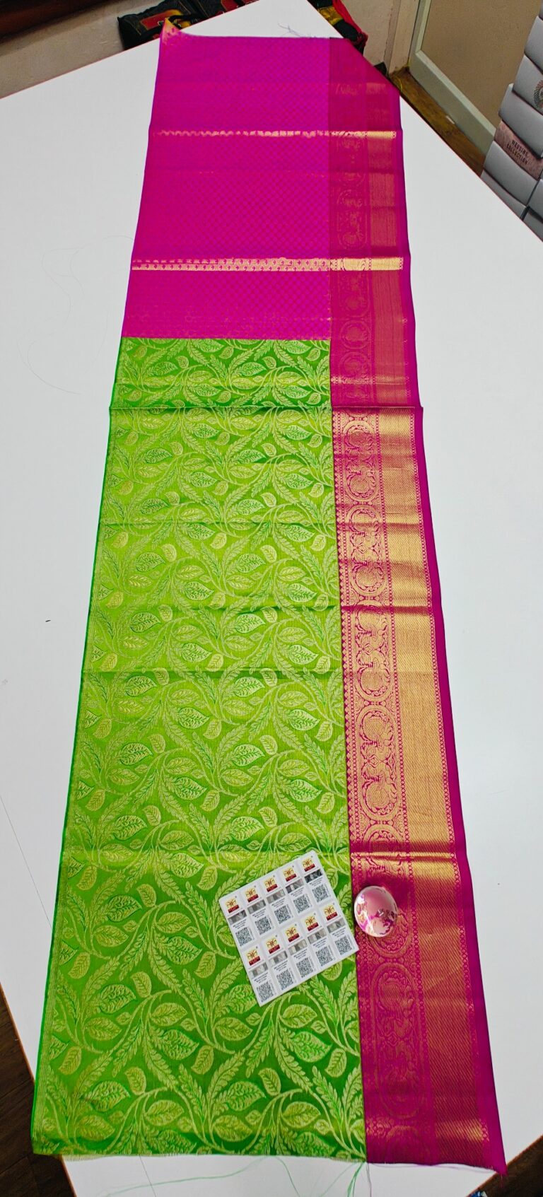 •Immerse yourself in the luxurious feel of authentic handwoven silk, adorned with intricate zari