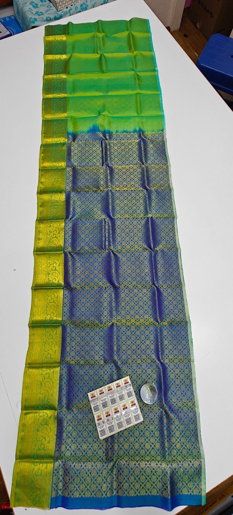 •Immerse yourself in the luxurious feel of authentic handwoven silk, adorned with intricate zari