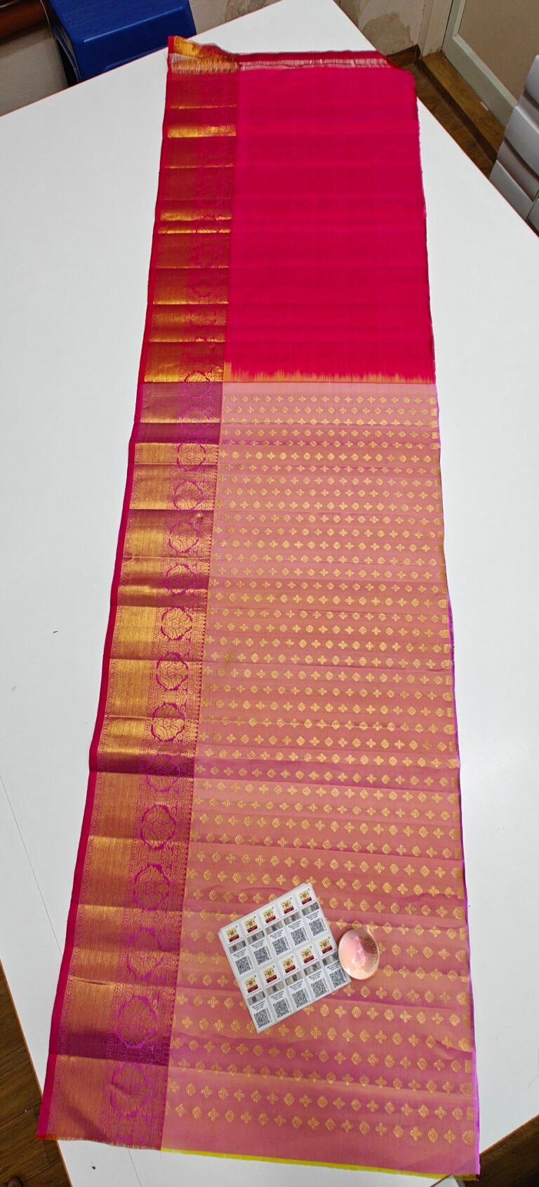 •Immerse yourself in the luxurious feel of authentic handwoven silk, adorned with intricate zari