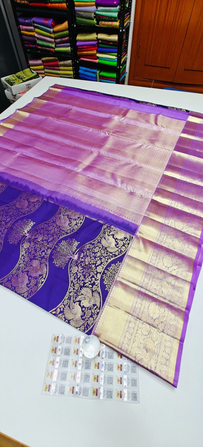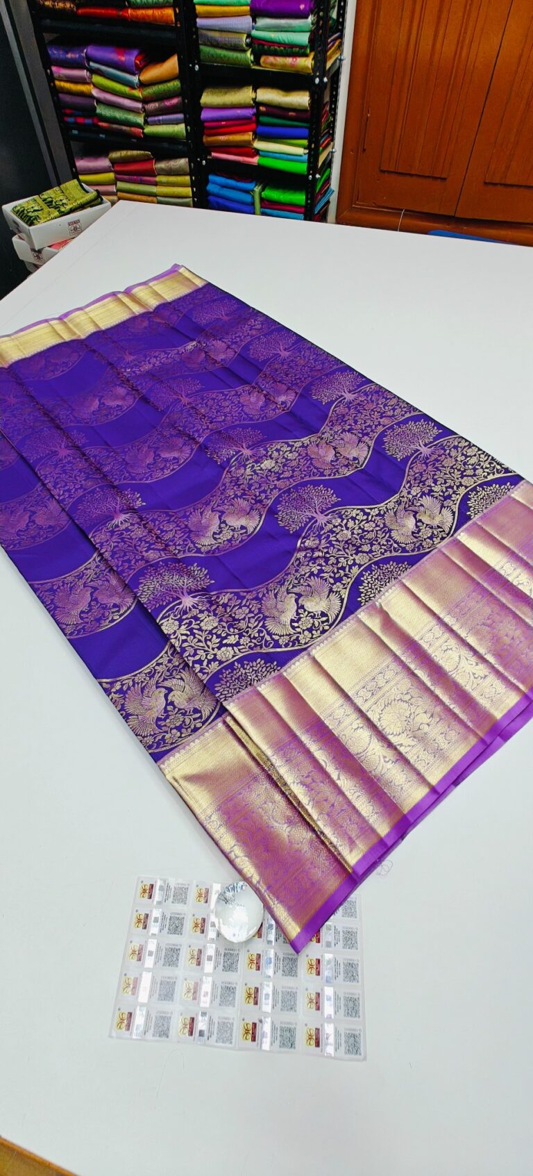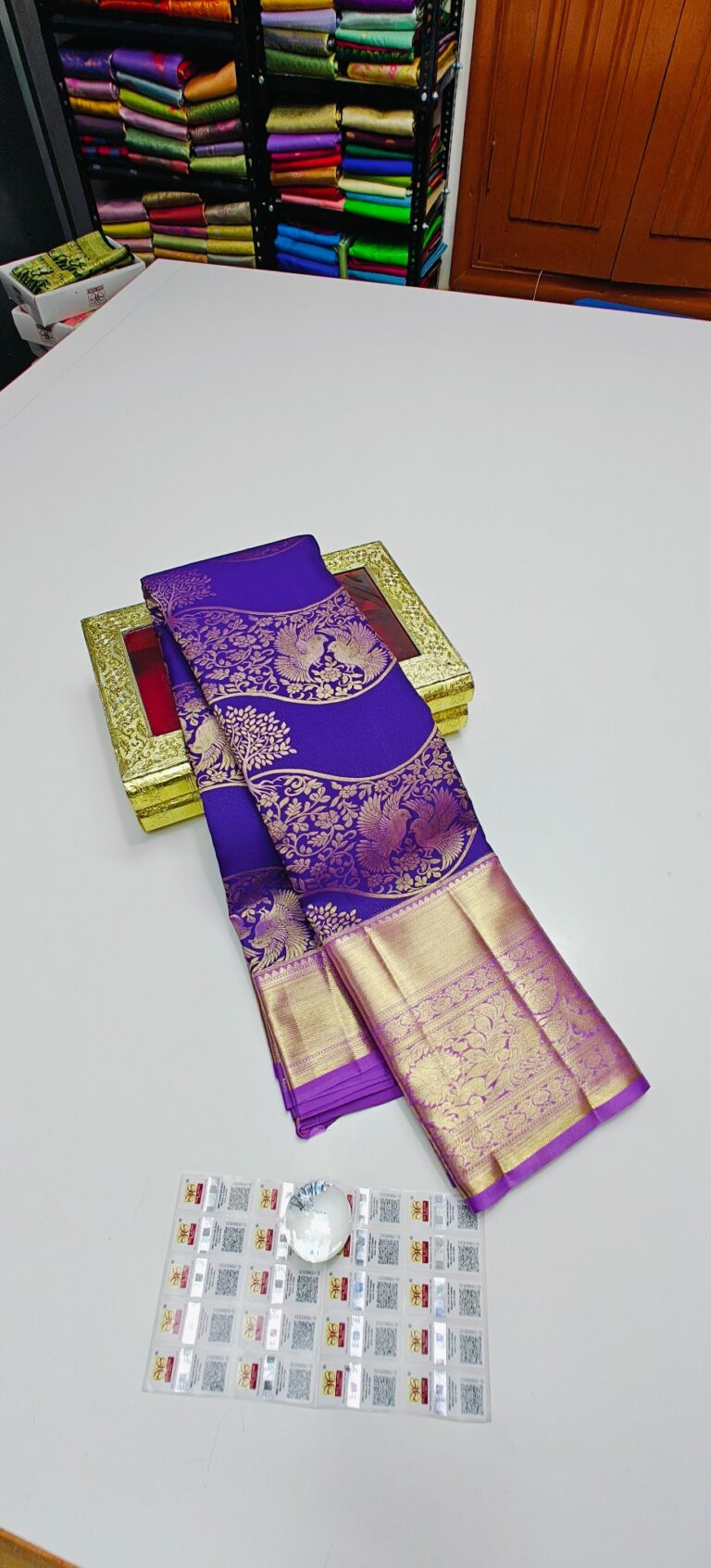 Storage: Store silk sarees folded neatly in a breathable cotton or muslin cloth to prevent creasing and protect them from dust and pests.