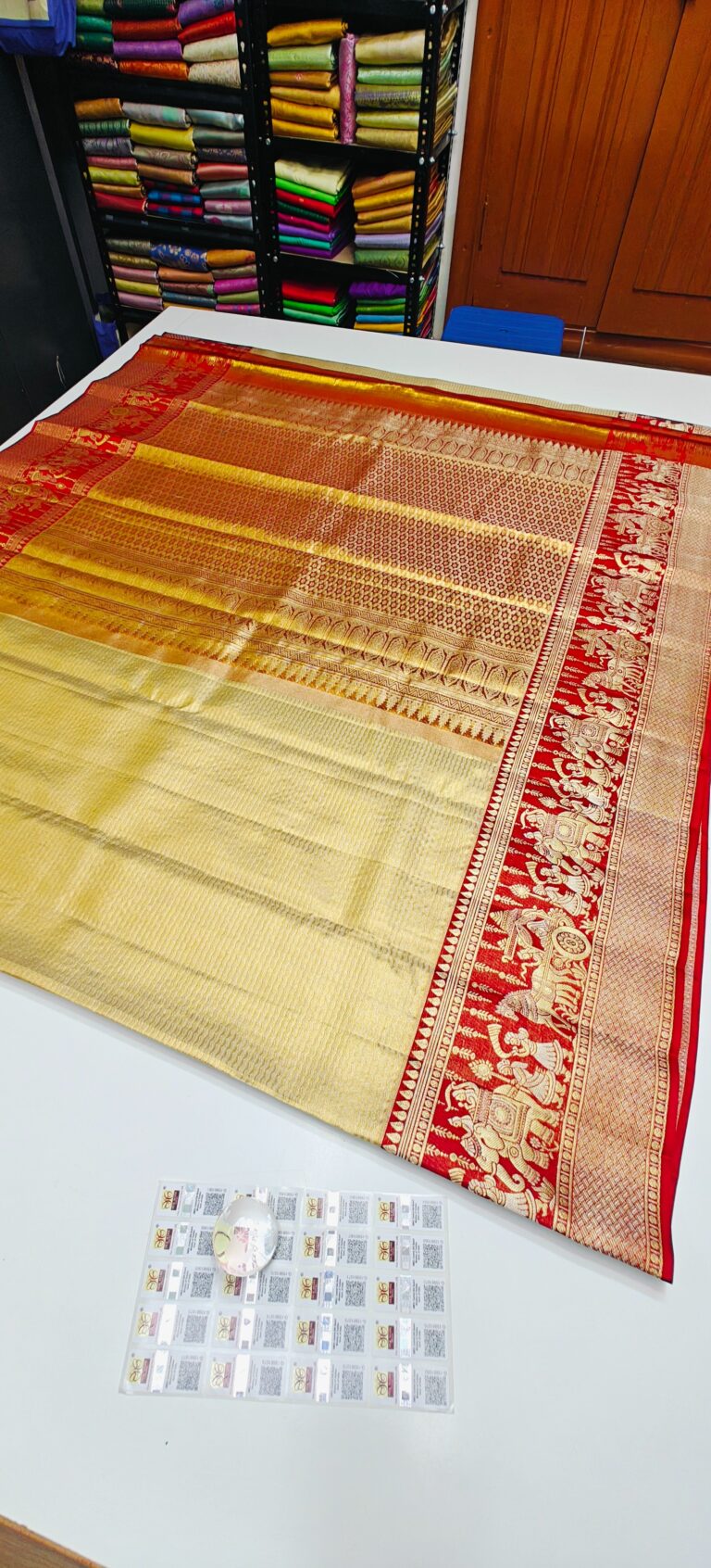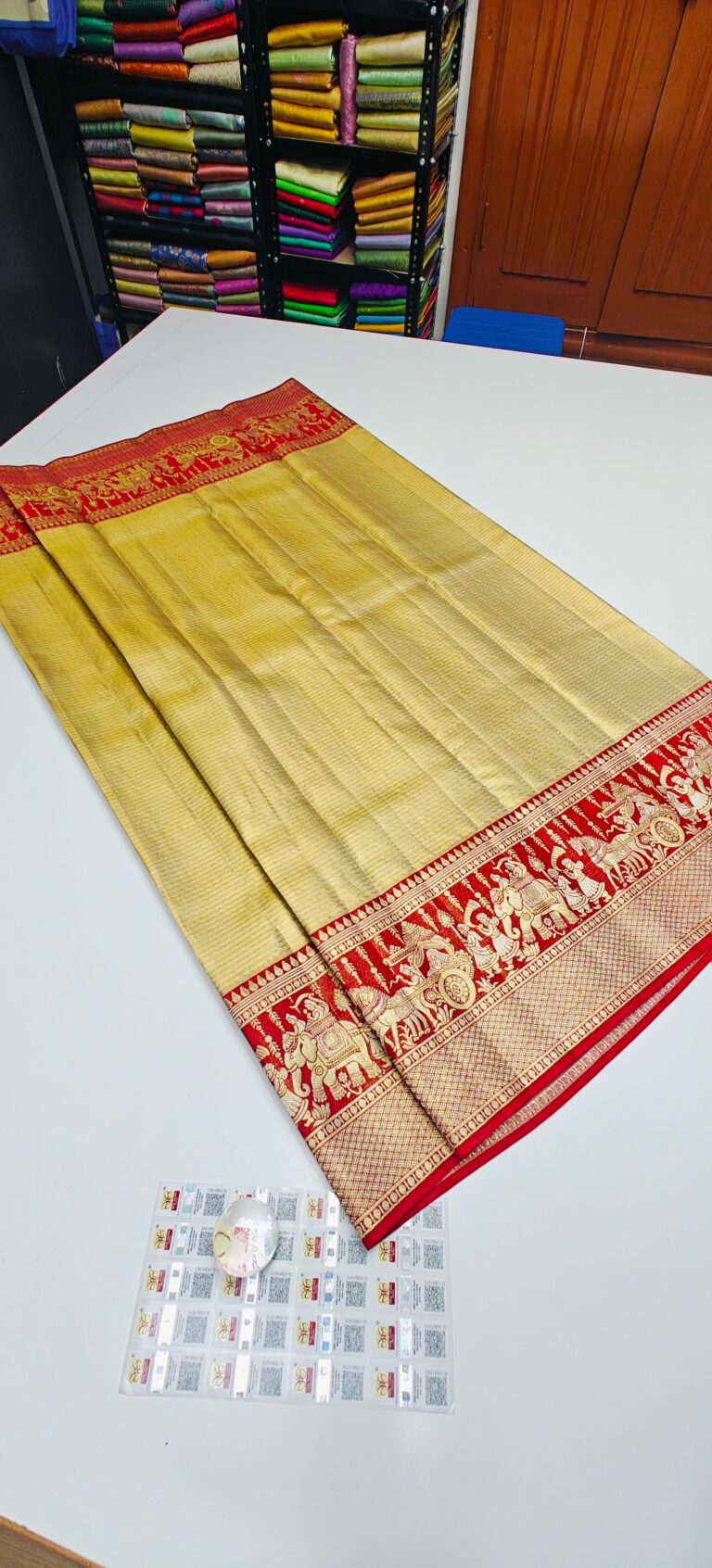 Storage: Store silk sarees folded neatly in a breathable cotton or muslin cloth to prevent creasing and protect them from dust and pests.