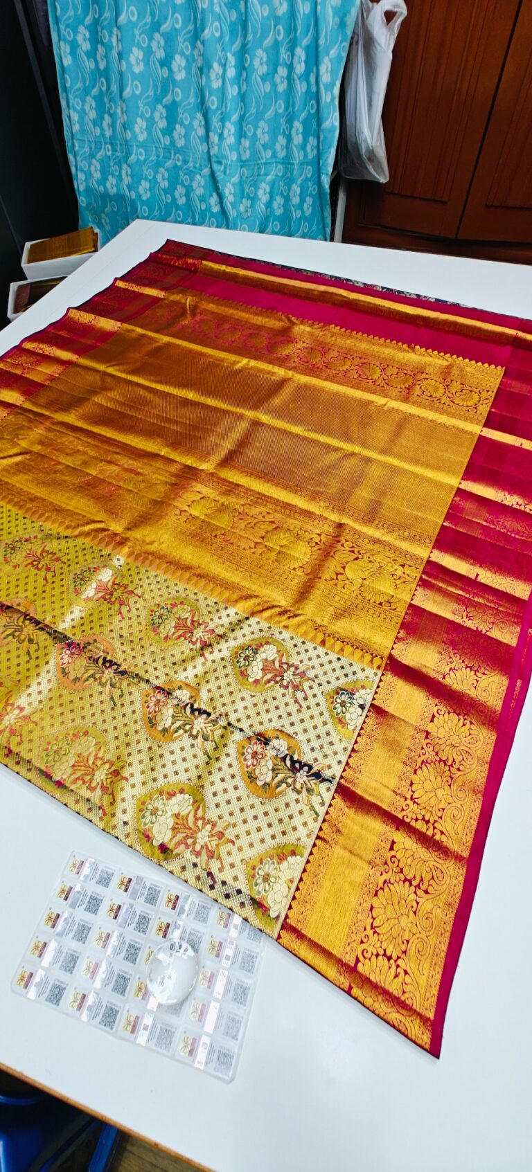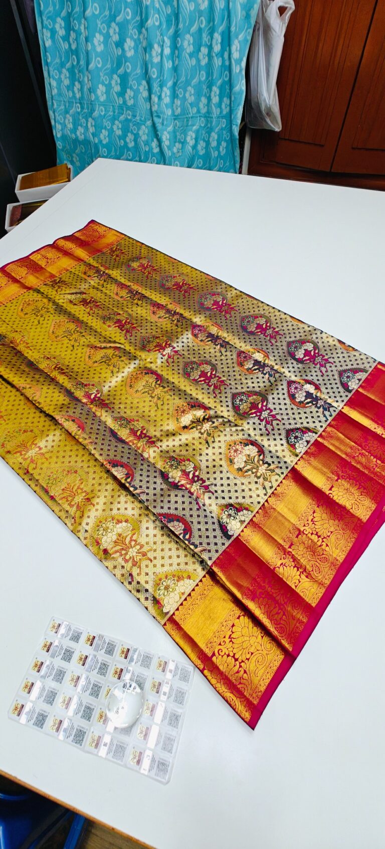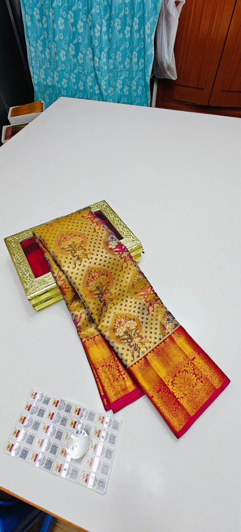 Storage: Store silk sarees folded neatly in a breathable cotton or muslin cloth to prevent creasing and protect them from dust and pests.